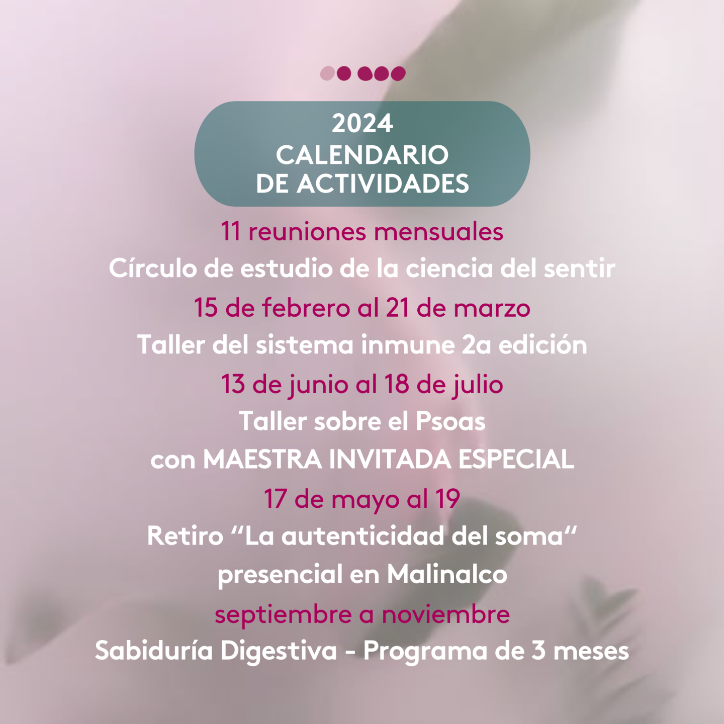 "Para entrar en contacto profundo contigo misma, para un conocimiento real y experiencial de tu ser material y su vinculación espiritual indivisible y para cultivar un bienestar multidimensinal consciente y perdurable."